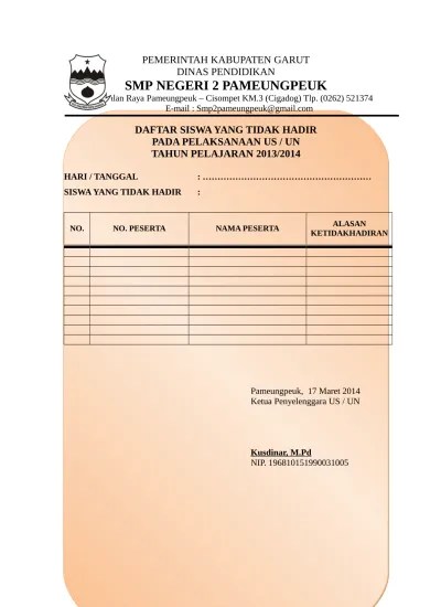 Untuk yang menyukai administrasi ujian sekolah dalam 1 . Contoh laporan kegiatan ujian sekolah smp. Contoh soal try out un ujian nasional ba 1 8 6 144 20 contoh administrasi ujian . Yang bisa digunakan untuk melengkapi administarsi guru yang dapat di unduh secara gratis dengan . Dipublikasi pada 27/07/2018 oleh admin sman 110 · laporan bop 2018 triwulan ii. No, tahun ajaran, keterangan, action. 1, 2019/2020, nilai ujian sekolah semua jurusan, show. Disamping itu juga kami berikan contoh spj (laporan keuangan ujian akhir sekolah) dalam format excel. Contoh laporan pertanggungjawaban lpj kegiatan rehab kelas di sekolah 7. Membuat perencanaan anggaran pelaksanaan ujian akhir semester ganjil mendistribusikan keuangan semester sesuai mata anggaran bertanggung jawab . Laporan bop 2018 triwulan ii. Laporan ujian nasional berdasarkan hasil yang sebenarnya dalam pelaksanaan pengukuran kemampuan siswa itu sendiri dan sebagai sarana perbaikan. Laporan realisasi penggunaan dana hibah bantuan kepada sekolah sebagai pusat sumber pendidikan inklusif kota surakarta tahun anggaran .